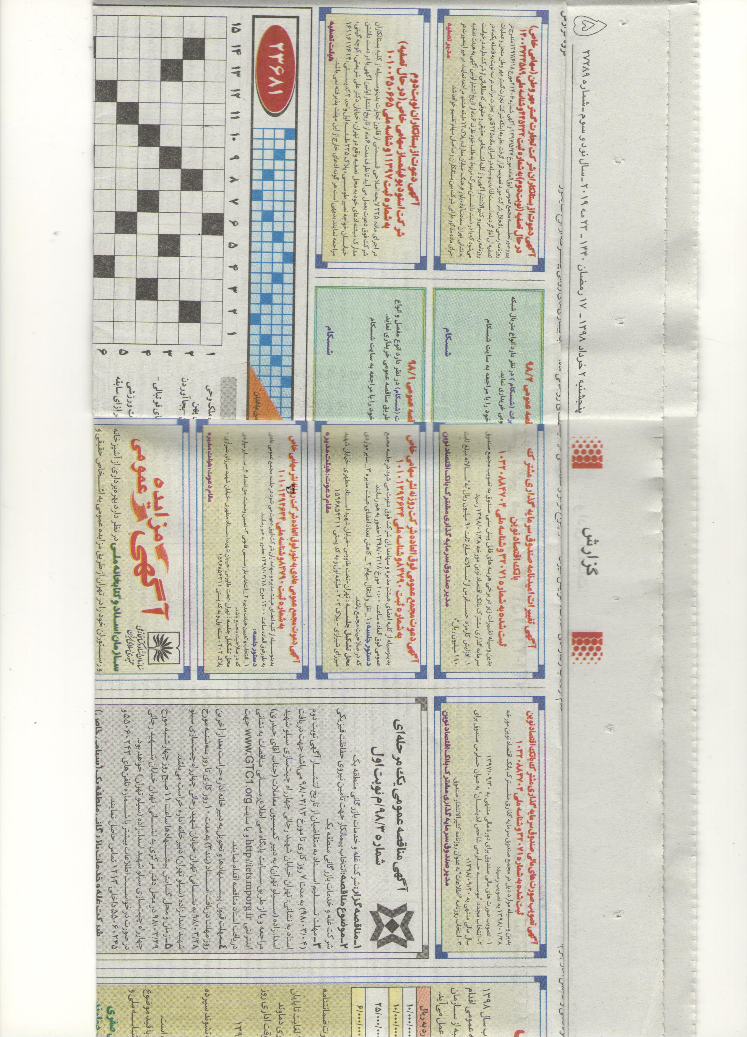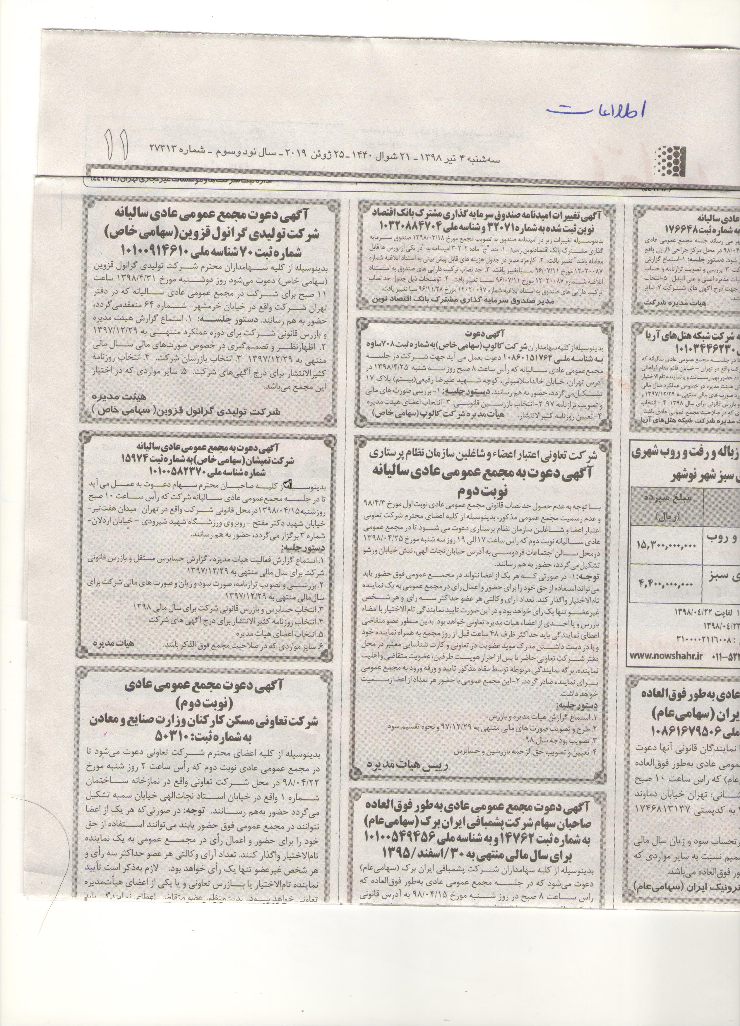 آگهی ثبت صورتجلسات مجمع 98/01/28 در روزنامه اطلاعات